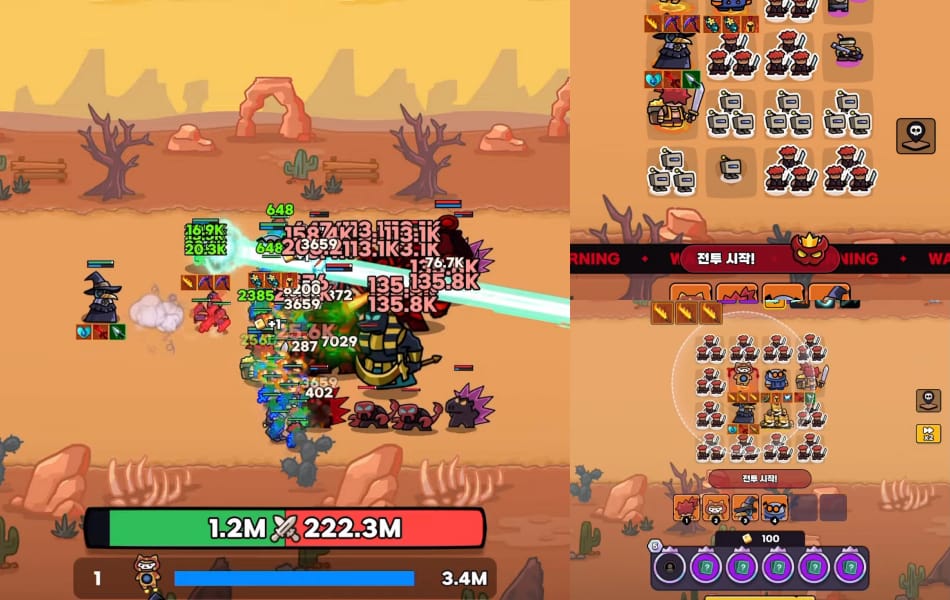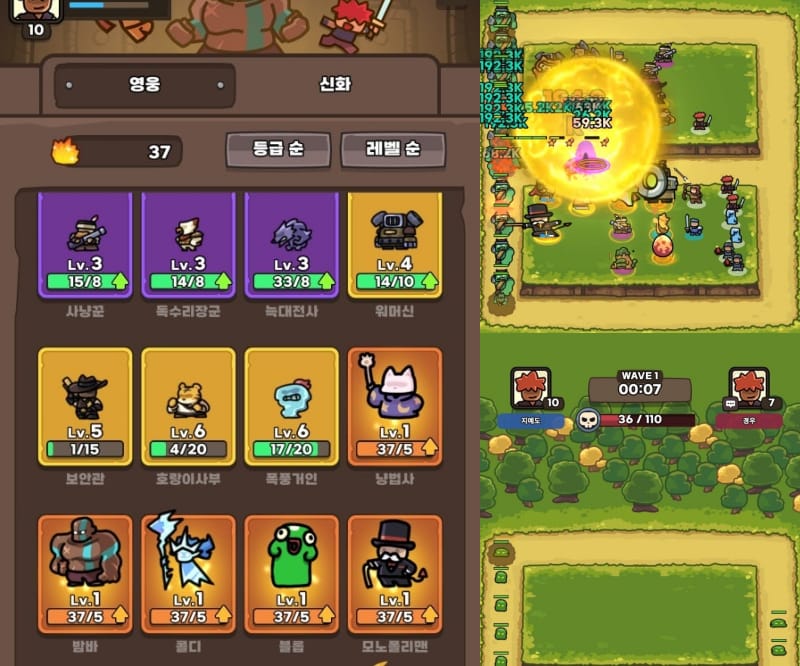 게임소개: 최근 출시한 마녀슈슈슉은 뱀파이어 서바이벌과 타워 디펜스 게임을 섞은 느낌으로 몰려오는 몬스터들을 막는 방식입니다. 게이지를 쌓으면 캐릭터 소환이나 스킬 레벨 올릴 수 있고시간이 지날수록 몬스터들 엄청나게 몰려옵니다. 플레이 자체가 뱀서류와 똑같지만 움직이는 컨트롤만 뺀것인데 아이템을 강화하고 화력을 높히는것도 재밌지만 컨트롤에서 나오는 쫄깃함이 없어서 덱이 익숙해지고 세팅이 안정화되면 빠르게 질릴 수 있습니다.