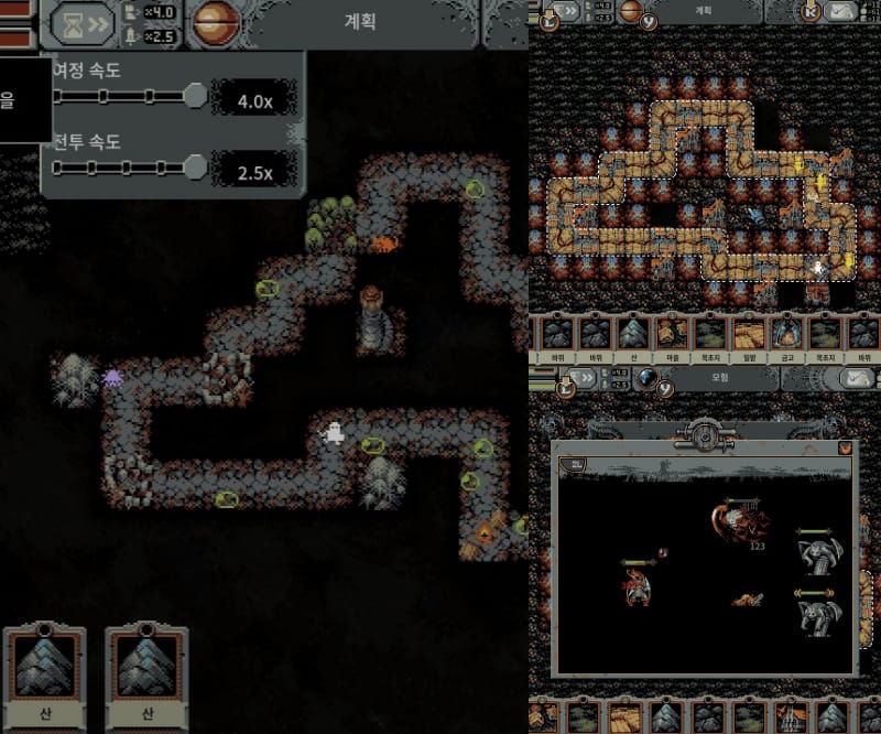 게임소개: 루프히어로 게임은 끝없이 반복되는 길을 돌며 점점 성장해 나가는 용사의 모습을 그리고 있는데, 플레이어는 카드를 활용해 타일과 몬스터, 자원 등을 배치하며 전략적으로 게임을 진행합니다. 몬스터를 잡아 얻은 카드와 장비로 덱을 짜서 보스에 도전하는 방식이죠.