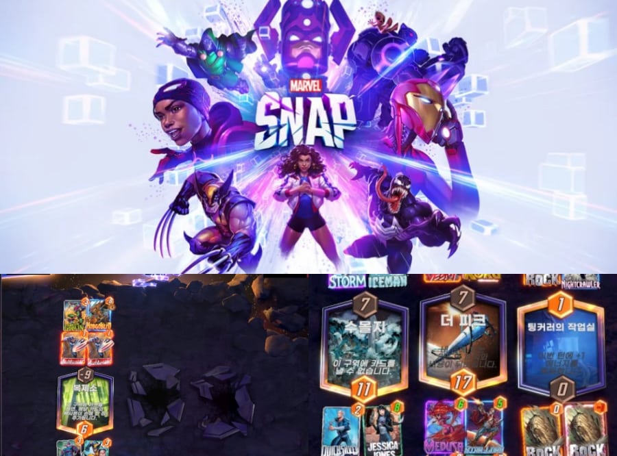 게임소개: 하스스톤을 좋아했던 저한테는 쉬우면서도 심리전, 전략성을 펼칠 수 있는 카드 게임을 기대하고 마블스냅을 플레이해 봤습니다. 제일 흥미로웠던 건 큐브 시스템입니다. 말하자면 랭크 포인트 같은 건데, 만약 게임을 이길 거 같으면 스냅을 쳐서 큐브를 하나 더 배팅할 수 있습니다. 이렇게 최종 배팅된 큐브 개수만큼 이기면 따고 지면 잃습니다. 종합적으로 매니아들은 재미있게 즐길 수 있겠지만 대중적으로 흥하기는 힘든 게임이라고 생각하네요.