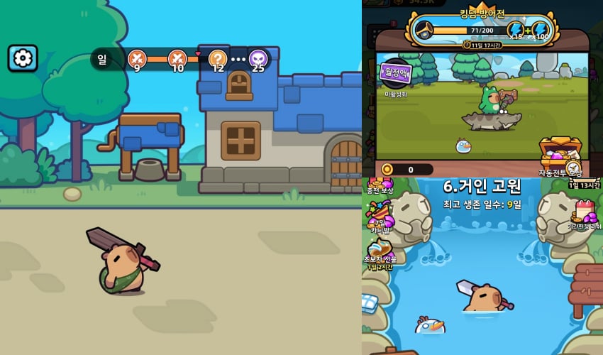 게임소개: 수집 방치형 rpg를 좋아하는 직장인 분들에게 딱 적당한 게임 무명기사단입니다. 강제 방치형 게임으로 영지(마을)를 건설하고 세팅하여 재화 수급을 해서 무소과금도 원활한 진행이 가능합니다. 광고제거 안사도 되는데 3,000원 주고 전설캐릭터 트리스탄(활쟁이) 이거 1개는 구매해서 플레이하는 것을 추천합니다. 단점을 나열해 보자면 캐릭터에 맞는 전용무기를 뽑아야 스킬 성능이 제대로 나옵니다. 그리고 모든 캐릭터 스킬은 단 하나밖에 없으며 캐릭터는 보스 스테이지에서 40퍼센트 확률로 드롭됩니다. 조각 형태로 1개씩 주고 20개 모으면 1마리 합성 즉 같은 맵 50판 돌려야 돼서 반복전투가 조금 아쉬웠네요.