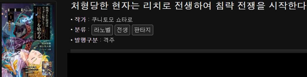 평가: 믿었던 사람들에게 버림받아서 극도의 분노로 리치로 전생하여 발생하는 스토리인데 무엇보다 주인공이 느꼇던 분노와 좌절감이 잘 나타났습니다. 항상보면 좀 재미없는 작품은 원작이랑 같이 동발이 되고 좀 재밌는 작품은 간을 보는건지 만화책만 나오고 원작은 안나와서 좀 속이 상하는 복수물 좋아하시면 추천해드리고 싶은 작품입니다. 믿었던 사람들에게 버림받아서 극도의 분노로 리치로 전생하여 발생하는 스토리인데 무엇보다 주인공이 느꼇던 분노와 좌절감이 잘 나타났습니다. 항상보면 좀 재미없는 작품은 원작이랑 같이 동발이 되고 좀 재밌는 작품은 간을 보는건지 만화책만 나오고 원작은 안나와서 좀 속이 상하는.. 복수물 좋아하시면 추천해드리고 싶은 작품입니다.
