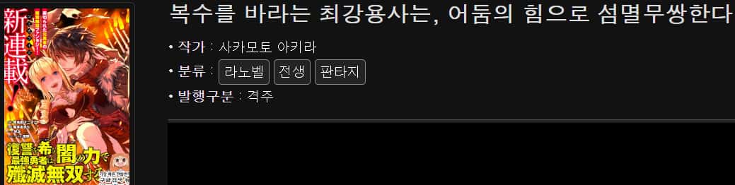 평가: 일단 잔인한 복수물입니다 .그런데 디테일한 묘사나 고문하는거는 '회복술사의 재시작' 보다 덜한것 같습니다. 이 작품에서 용사와 용사가 아끼던 일행에게 한 짓을 보면 '회복술사의 재시작'의 남주에게 했던짓보다 엄청나게 더했는데 잔혹하게 복수하는 묘사가 좀 부족하다? 더욱더 몇십배 곱절로 고통스럽게 해줘야 하는데 그점이 아주 약간 불만입니다. 한떄 회복술사 때문에 이런 복수물이 잠시동안 주류를 이룬적이 있었는데 그 아류작들을 보면 한숨만 나온달까요 왜 본인과 그 주변이 그리 당했으면서 복수할꺼면 확실하게 하지 갑자기 착해져서 복수도 약해지고 너무 스토리가 말이 안되는 작품을 보고 화딱지만 났거든요. 그래도 이 작품은 시원시원하니 정주행 추천드려요.