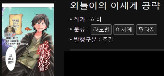 평가: 보통 주인공이 은둔형외톨이라는 설정을 해도 그냥 초반 설정일 뿐 오히려 외향적 주인공들이 많은데 이 작품은 정말 은둔형외톨이 주인공을 잘 표현했습니다. 영화 '이보다 더 좋을순 없다'의 잭니콜슨 캐릭터처럼 캐릭터 외에 스토리 진행, 복선 등도 굉장히 뛰어납니다. 이세계 장르를 좋아한다면 이 작품을 강추드립니다.