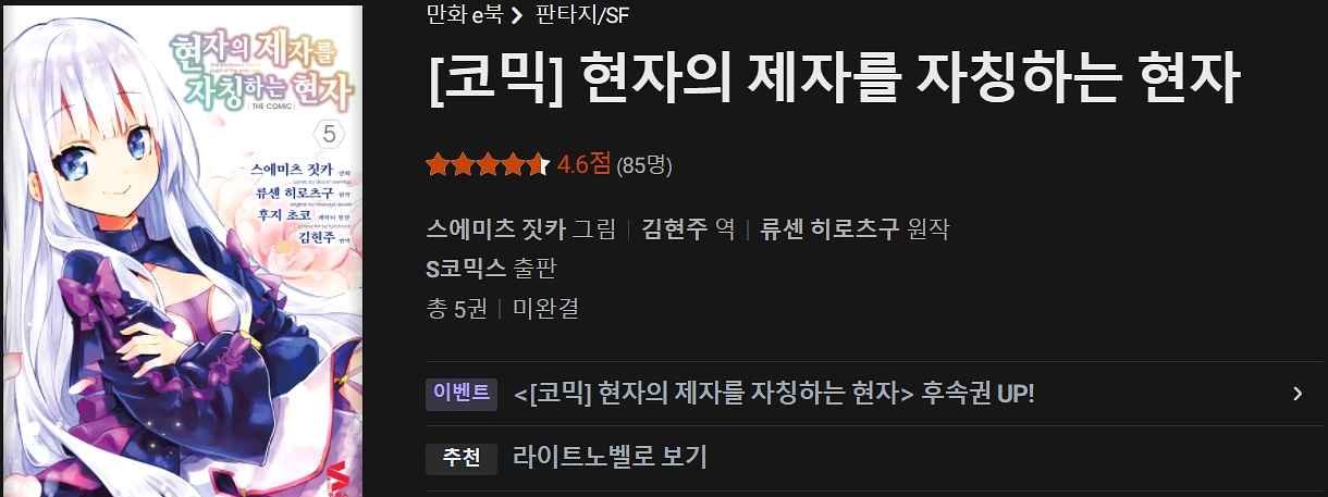 평가: 이 라노벨 만화가 재밌는 이유는 이세계물인데 치트나 여신이나 게임같은 스텟 설정 없고 주인공이 답답하지 않고 성격이 극한의 중2병 미친놈입니다.