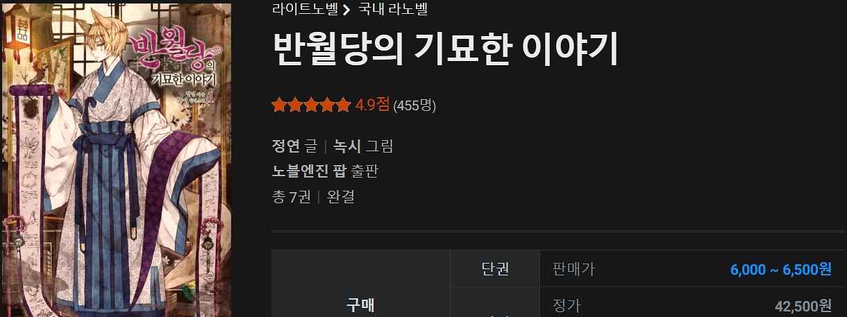 평가: 주인공과 반월당 식구들 캐릭터들도 매력적이고 서로 티키타카 거리는 것도 정말 웃기고 무엇보다 스토리가 미쳤습니다. 몰입감과 긴장감도 장난 아니고요. 사람마다 소설이 조금 무섭게 느껴질 수는 있을 것 같아요. 우리나라 전통 귀담을 다루다 보니 그런 것 같습니다. 진짜 이런 현대 동양풍 소설 없어요. 읽으셔도 절대 후회 안 하실 겁니다.