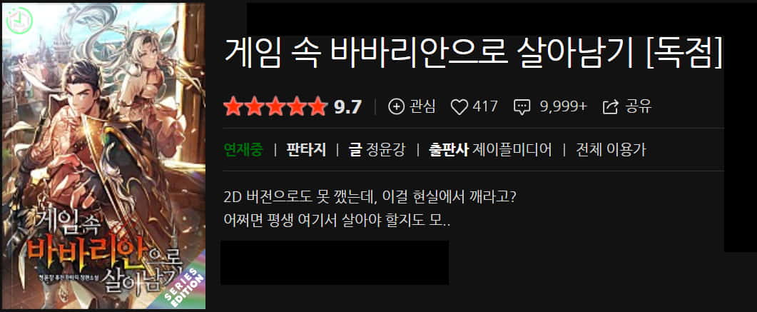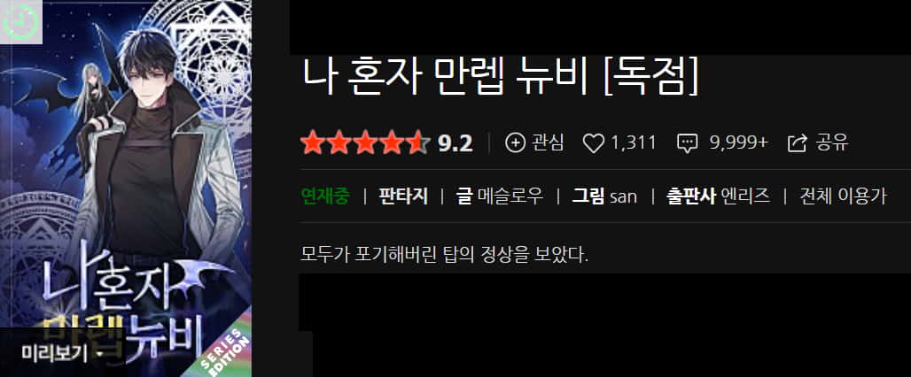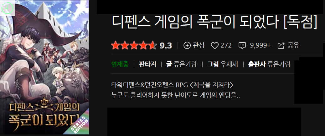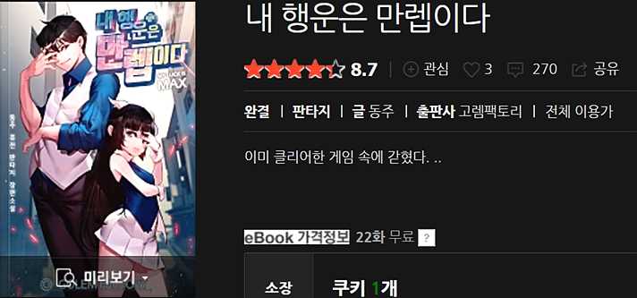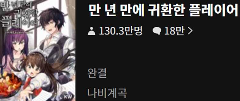 서비스 종료까지 앞으로 15년. 오직 나만이 엔딩을 알고 있다. 나는 고인물이다. 초반부분 패시브 같은 설정 오류와 개연성 부족을 가지고 시작하는 작품입니다. 순수하게 재미있는것만 생각한다면 나쁘지 않습니다. 그리고 후반부 들어서면서 초반 떡밥 거의 다 회수 되며 계속 보면서 이상하던 이야기도 점차 맞춰져 갑니다. 중간에 약간 지루한 포인트가 있을 수도 있는데 매력 있는 작품입니다.