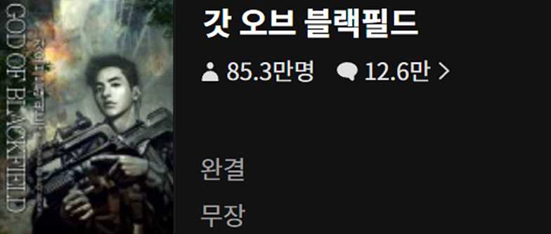 줄거리는 불가사의한 감각과 탁월한 전투 능력의 소유자 주인공 강찬. 그런데 심장이 뻑뻑할 정도로 엄습해 오는 이 불안함은 도대체 뭐란 말이냐! 퍼억!둔탁한 소리가 들리며 세상이 온통 하얗게 변했습니다. 애써 정신을 차린 뒤, 벽에 걸린 거울에 얼굴을 비치자그곳에는 웬 허약한 고등학생의 모습이 보였습니다. 게다가 주변에는 온통 자신을 괴롭히는 놈들뿐. 다 죽여 주마. 갓 오브 블랙필드! 모르나 본데, 이건 적군이 만들어 낸 말이다. 죽음을 선사하는 신이라는 뜻이지 라는 이야기 입니다. 소설도 영화도 유일하게 잘 안보는 장르가 용병, 군인물이었습니다만 그걸 깬게 갓오브 블랙필드. 무장님 필력이 좋으신건지 사람 환장하게 하더라고요. 한동안 잠안자고 본다고 고생좀 했습니다.