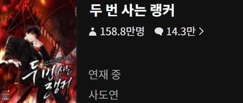 1회차 처음에 웹툰으로 보다가 웹툰 뒤부터 소설정주행. 2회차 밤새서 다보고 일어나서 바로 소설 1화부터 정주행. 3회차 몇달뒤에 또 생각나서 정주행. 4회차 온갖 무협 깔짝이다 차라리 이걸 한반더 보자 싶어 정주행. 5회차 솔직히 이젠 질렸겠지 했는데 또 끝까지 다봤네요. 6회차는 없을거 같지만 소설을 이렇게 재탕 한거는 거의 없었는데 진짜 미친필력에 개그 액션 감동 뽕맛 다있는 작품임.